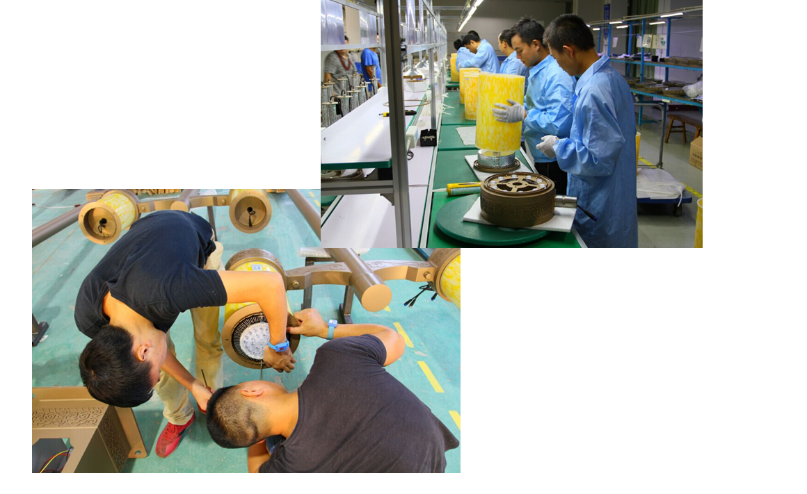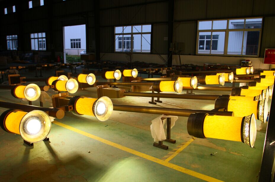 各個(gè)部件生產(chǎn)好后進(jìn)行裝配,使產(chǎn)品完整地呈現(xiàn)。首先是電器的裝配,LED燈、金鹵燈、點(diǎn)光源等各種定制光源一一組裝,線路按顏色區(qū)分規(guī)范操作。結(jié)構(gòu)上,燈桿和燈筒的裝配也需要細(xì)心和耐心。經(jīng)過(guò)能工巧匠的生產(chǎn)、裝配、調(diào)試,一盞盞莊重典雅的步道燈開(kāi)始閃耀光芒。