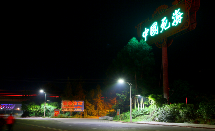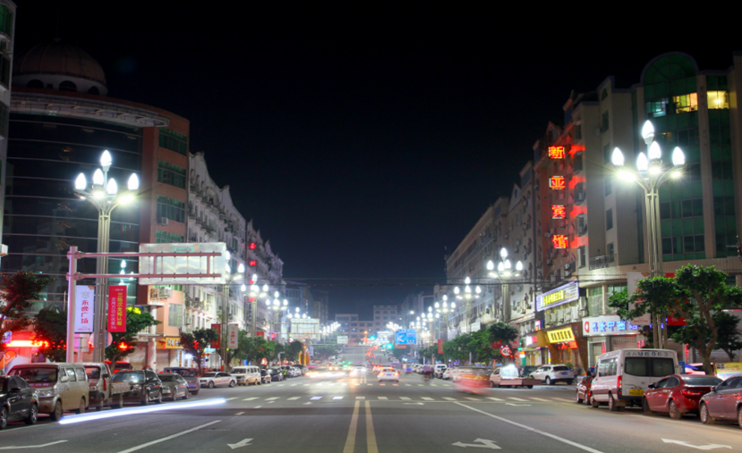 文化產業園濱江北路,位于中國死海景區門口路段,安裝了64套高低臂LED路燈。