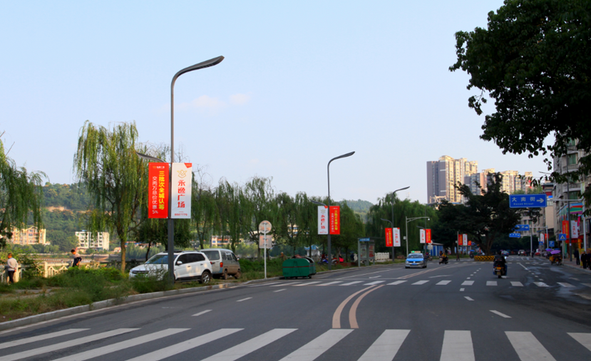 濱河路,作為城區沿江路段,安裝了48套新葉燈。燈型以萌發的嫩芽作為設計元素,簡潔的高低臂設置,加上獨特的葉脈體現方式,現代時尚又蘊含勃勃向上的生氣。