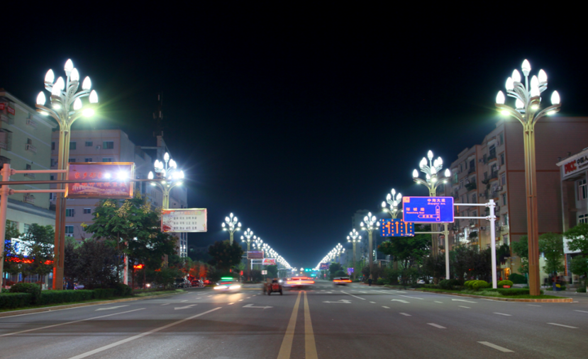 蓬萊大橋和蓬萊路,作為連接老城區和新區的主干道,安裝了50套四叉五火玉蘭燈。