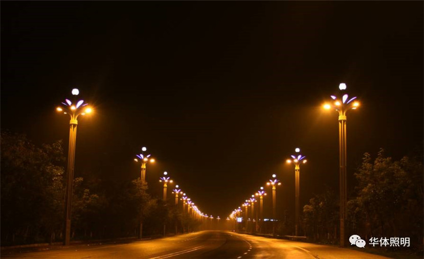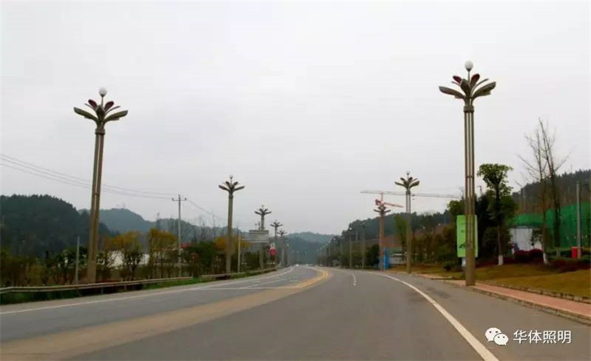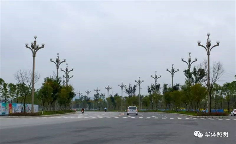 為貫徹落實城市工作會議精神,加快城市更新提檔增速,推進城市基礎設施轉型升級,提升城市品位,根據市委、市政府安排部署,按照遂寧市打造“綠色城鎮?幸福生活”示范工程的要求,2017年1月,遂寧市河東新區二期(A區)整體城鎮化建設靈泉大道路燈提升安裝工程正式啟動。此條道路是連接遂寧東高速出口和G318線的重要迎賓道路,全長約2.4公里,華體照明設計并安裝了15米“蓮花頌”景觀燈。
