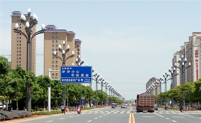 為深入貫徹常德市在十三五規劃綱要中提出的“一個中心、三個邁進、五個常德”的發展戰略,加快城市提檔升級步伐,2017年4月,常德市津市九澧大道路進行道路照明改造。四川華體照明科技股份有限公司根據道路的基本情況,設計并安裝了15.08米“八叉九火玉蘭燈”。