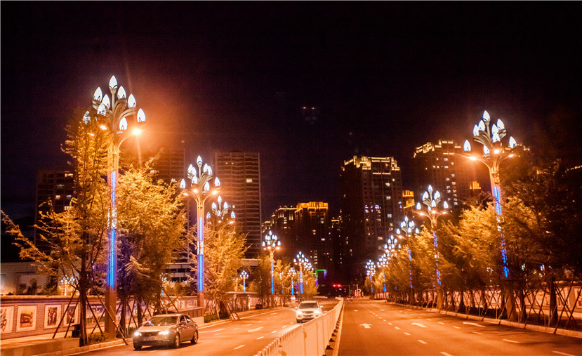為了進一步提升安寧市城市面貌,華體照明參與安寧市道路改造和道路燈光提升工程,在2017年4月—5月,設計安裝了“八叉九火玉蘭燈”,對安寧市高速東收費站——連然街的路燈更新換代。