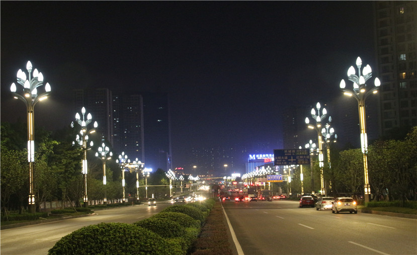 玉蘭燈,高15.08米,既有主光源,又有裝飾光源,皆采用LED,彰顯節(jié)能環(huán)保理念,既滿足了二郎迎賓大道和科成路路段的照明需求,同時也能起到裝飾美化城區(qū)面貌的作用。