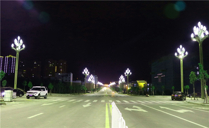 為配合此次城市道路建設,四川華體照明科技股份有限公司(股票名稱:華體科技 股票代碼:603679)設計并安裝了100套八叉九火玉蘭燈。