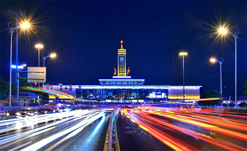 華體照明根據車站北路兩旁香樟樹綠綠蔥蔥的特點,將燈桿顏色設計為深綠色,和道路兩旁環(huán)境渾然一體,相互協(xié)調。