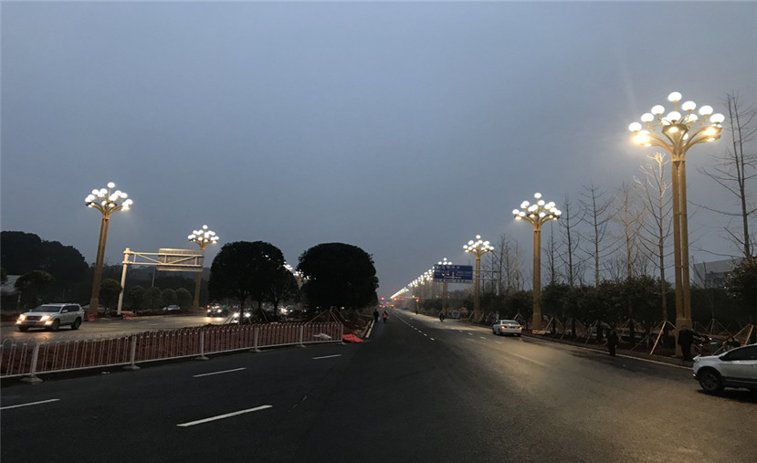 “芙蓉朝暉”以芙蓉花為元素進(jìn)行設(shè)計,芙蓉花是湖南省的省花,燈葉在保證道路照明基礎(chǔ)上,頂部的裝飾性照明,根據(jù)芙蓉花的外形進(jìn)行設(shè)計,體現(xiàn)出湖南特色,美觀又端莊。