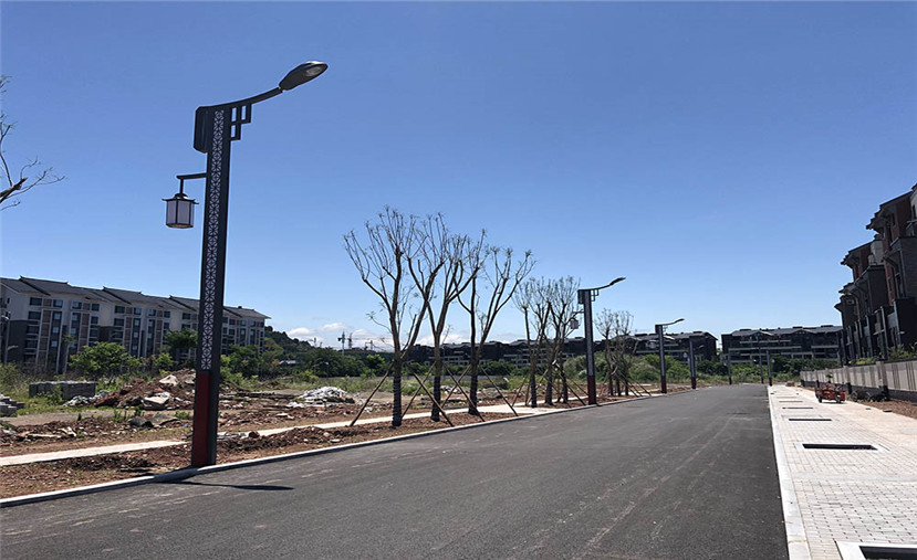 安裝于錦園路和六時路的新中式仿古路燈,燈桿采用中國傳統元素的窗花進行展現,程式化的紋樣在體現傳統美感的同時,又與現代簡潔的燈體巧妙結合。