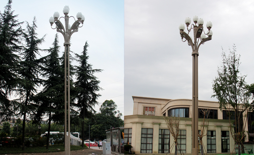 芙蓉中華燈,將成都市市花——芙蓉文化元素,運(yùn)用在多頭、植物造型燈桿的中華燈上。突破了傳統(tǒng)中華燈造型與照明功能,不能兼顧的缺陷,實(shí)現(xiàn)了功能照明和景觀照明完美結(jié)合,整燈呈現(xiàn)大氣、穩(wěn)重之感。波罩內(nèi)為我公司專屬配置的芙蓉?zé)舨ㄕ止庠矗G色照明,節(jié)能環(huán)保。華燈初上,璀璨奪目的芙蓉中華燈與來(lái)往的車輛交相輝映,使成都市迎賓大道的“美麗指數(shù)”直線上升。