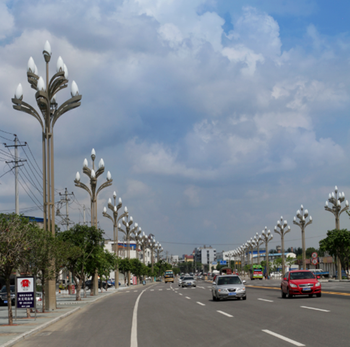 為加快城市提檔升級步伐,改善居民居住環(huán)境,提升西大門整體形象,自 2016年 4月起,天元鎮(zhèn)啟動了一系列道路照明改造工程。四川華體照明科技股份有限公司根據(jù)天元鎮(zhèn)道路情況,設(shè)計并安裝了13.5米八叉九火玉蘭燈。