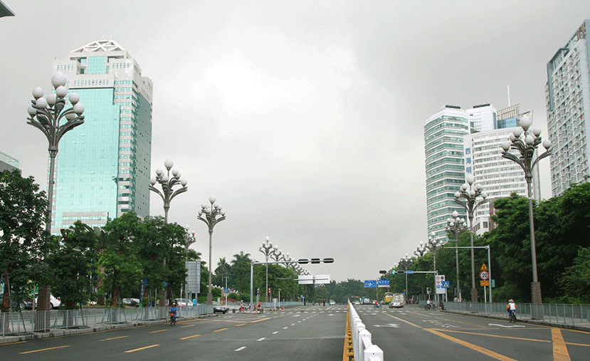 海口江東新區主干道的這些路燈,有“飛”一般的感覺