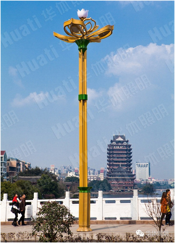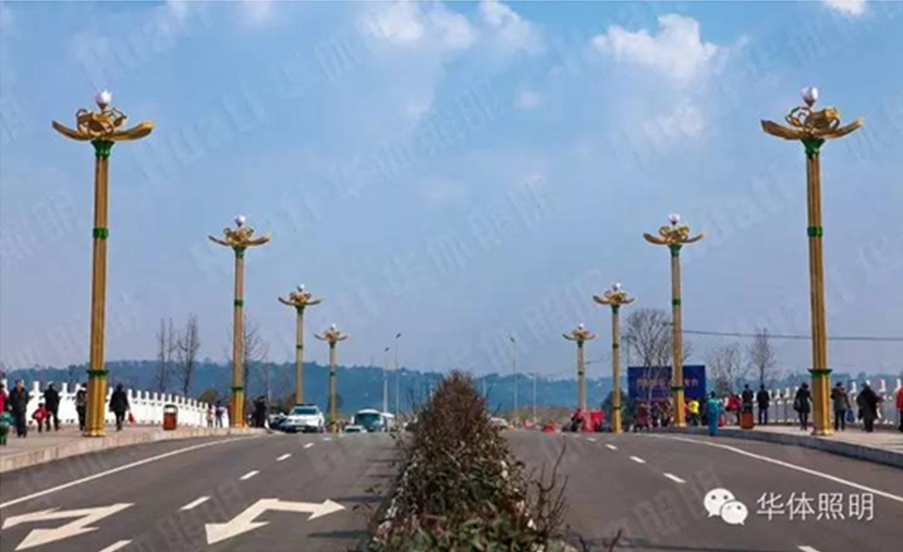 四川眉山市老泉橋,是連通眉山城區與東坡島的重要交通樞紐,也是東坡湖上一道亮麗的風景線。2014年12月,華體照明為老泉橋增添—“金荷羅裙”景觀照明路燈。