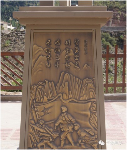 燈體底座采用了紅色文化設計元素,進行銅板雕刻紅軍抗戰形態,燈底長城紋理表面更具歷史厚重感。整燈玉蘭花的植物造型呼應該城生態化特征主題,為“景城一體”的目標出力。