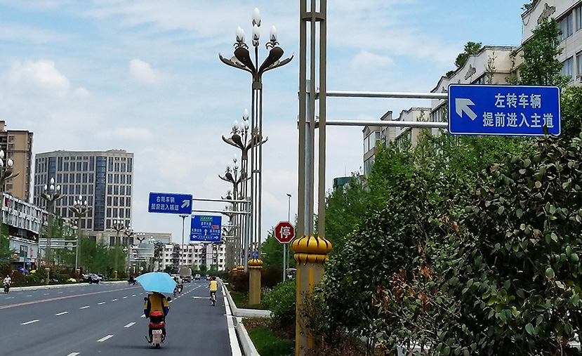 神暉,彰顯出邛崍歷史文化名城的豐厚底蘊和文化韻味,符合古城的城市特性,提升公共空間品質。在燈桿中段建立連接,加載了司馬相如贈與文君的“鳳求凰”典故元素,設計簡化標志形成圖案,保留及傳承了這對才子佳人的“文君當壚,相如滌器”的千古愛情佳話。