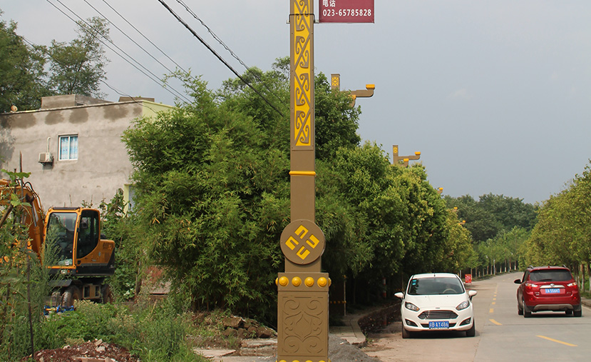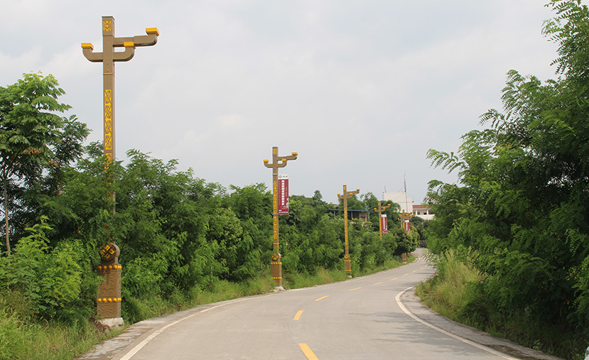 陶家鎮(zhèn)(白彭路至西池度假村道路段)道路景觀燈改造,安裝了由四川華彩照明工程設(shè)計(jì)有限公司設(shè)計(jì)研發(fā)的一款“漢斗”景觀燈。